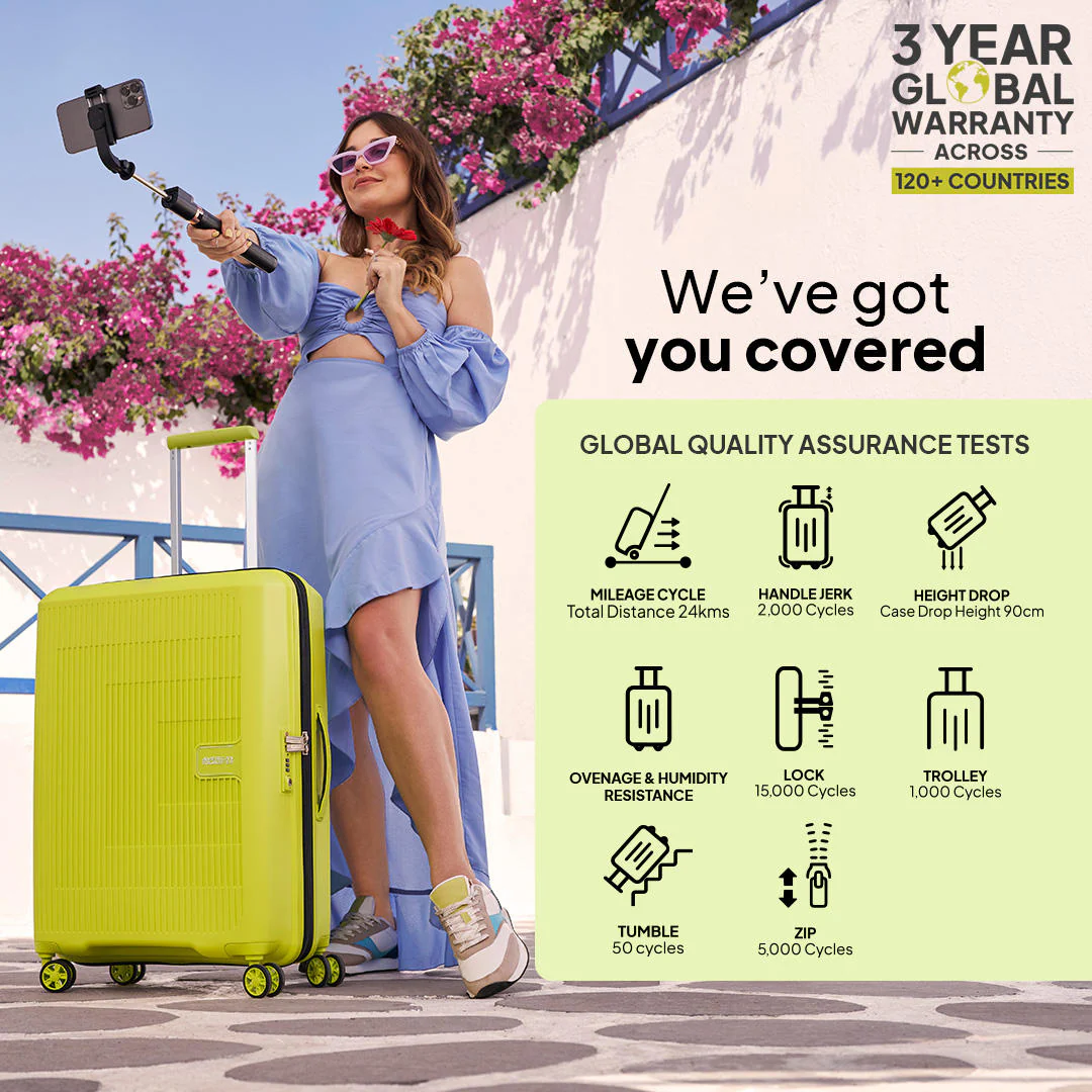 The 2023 Reddot winner – American Tourister Aerostep has taken the luggage world by storm with its durability, functionality and style! This polypropylene hard luggage is scratch and impact resistant and has a fleXi-plus handle to ensure better grip. The Aerostep’s NEW SHOCKLOCK WHEELS – intelligent suspension with precision braking technology are meant for smooth maneuvering and its recessed TSA lock, and double packing straps are the perfect security-convenience pair. With a 3-year international warranty and body color-matched components, this trolley bag simply has it all!