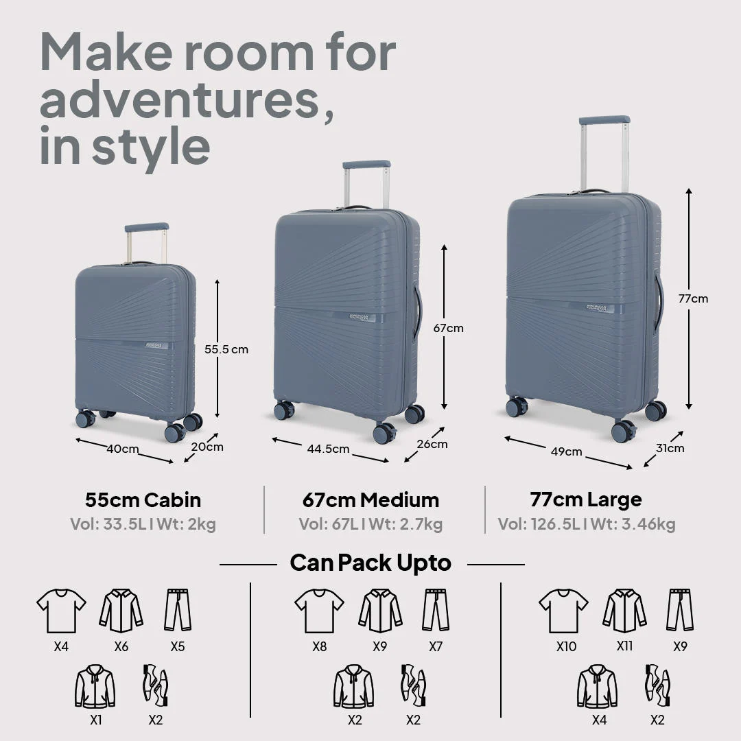 The revolutionary Airconic, our global bestseller is a superlight trolley bag for your fly-high travel tours! Would you believe that the large sized spinner in this series weighs only 3.2kg making it the most lightweight luggage set for complete travel ease. The slick design and superior finish in polypropylene looks brilliant in black, grey and formula red. The Pack Pro interiors with complimentary packing cubes ensure good luggage space along with dual packing straps for convenient packing. This iconic hardside luggage comes with a waterproof zipper, double wheels for swift & seamless movement as well as a complimentary luggage cover!
