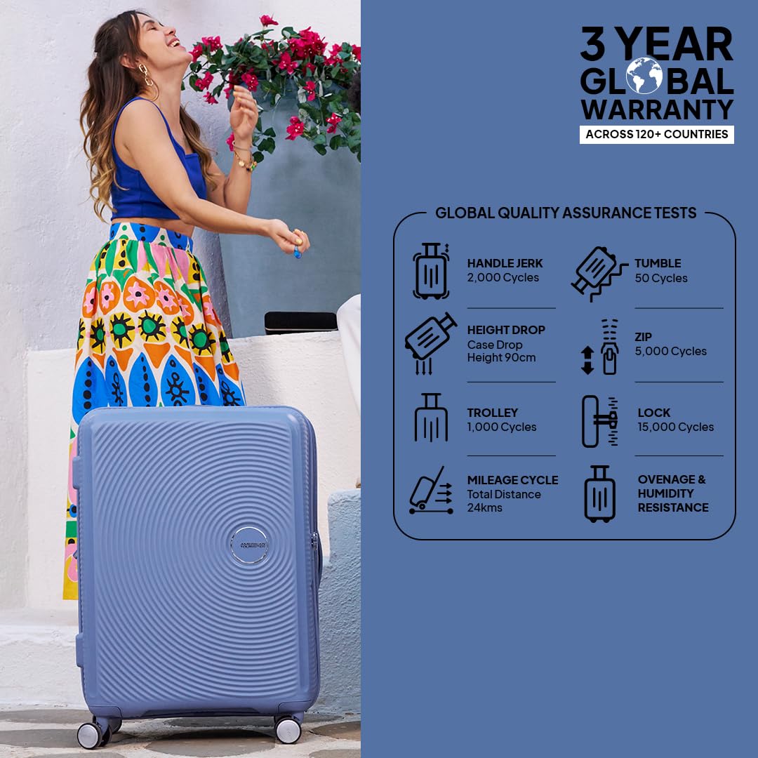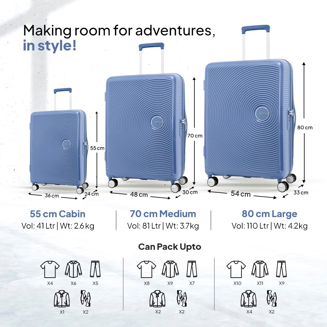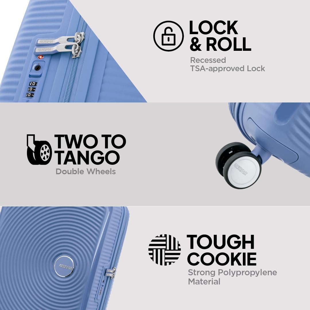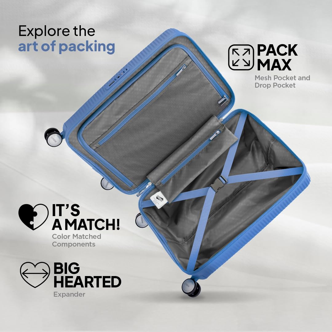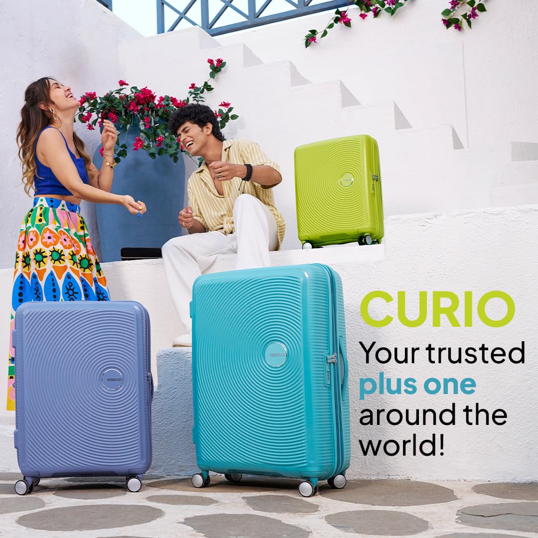 American Tourister Trolley Bag for Travel | Curio Spinner 67 Cms Polypropylene Expandable Hardsided Medium Check-in Luggage Bag | Suitcase for Travel | Trolley Bag for Travelling, Denim Blue