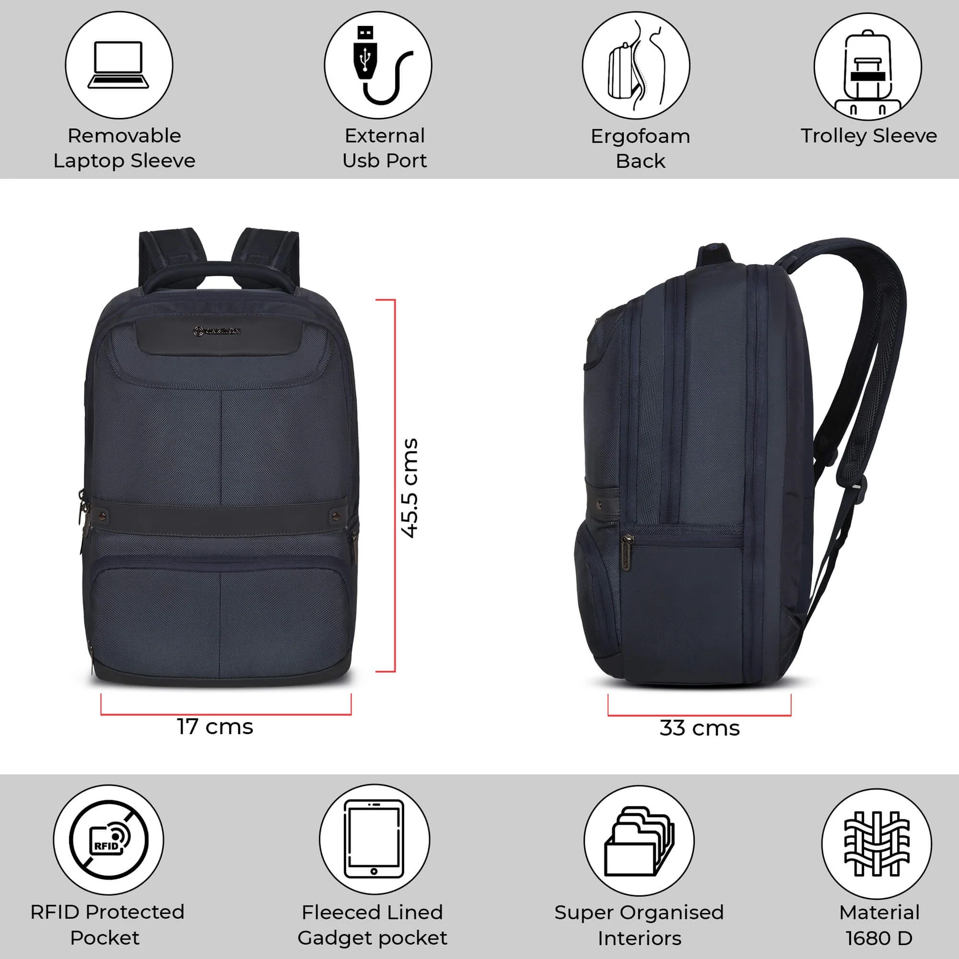 - Number of External Pockets – 6