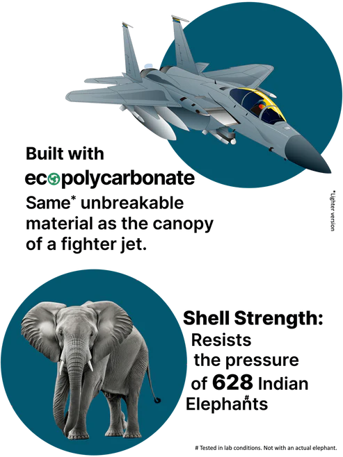 This certified trolley bag sets new benchmarks as India’s first Sustainable Hard Printed Check-in Luggage, ideal for both men and women. Its innovative 8-wheel design ensures effortless mobility, while the smart in-built laundry compartment and customizable handle height add convenience to your travels.