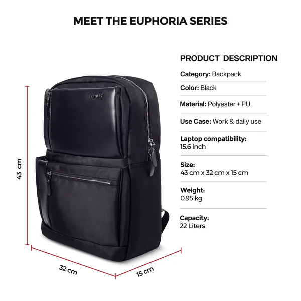 With a dedicated compartment for laptops up to 15.6 inches, this backpack offers 2 main compartments and 2 utility pockets to help you carry your tech, documents, and everyday essentials with ease. It’s lightweight at just 0.95 kg, making it perfect for daily commutes and business travel.