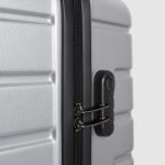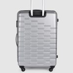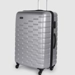 Silver-toned textured hard-sided medium trolley suitcase, secured with number lock