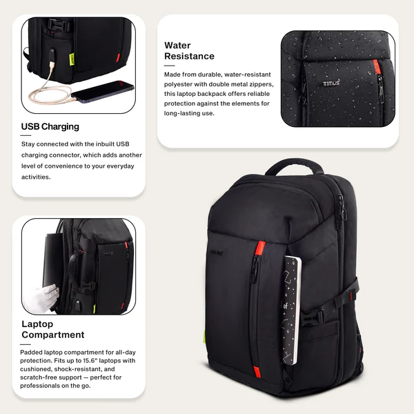 Introducing the Timus London Professional Laptop Backpack — the perfect blend of sleek design, smart utility, and professional appeal. Crafted for the modern commuter and working professional, this backpack is made from high-quality water-resistant polyester, ensuring your essentials stay safe and dry, no matter the weather.