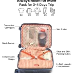 It also features an in-built laundry compartment, so you can keep your dirty clothes separate from your clean clothes along with a conveninet ConviPack on one side. Topo suitcase has a TSA approved lock security along with anti-theft zippers. Separate shoe and shirt packing cubes help you organise your bag in an efficient way. There is a protective film film on the bag that needs to be peeled off before use. It also features an in-built laundry compartment, so you can keep your dirty clothes separate from your clean clothes along with a conveninet ConviPack on one side. Topo suitcase has a TSA approved lock security. Separate shoe and shirt packing cubes help you organise your bag in an efficient way. It also features an in-built laundry compartment, so you can keep your dirty clothes separate from your clean clothes along with a conveninet ConviPack on one side. Topo suitcase has a TSA approved lock security.